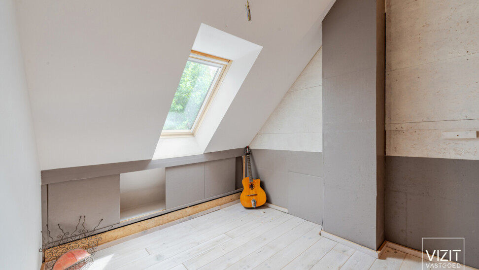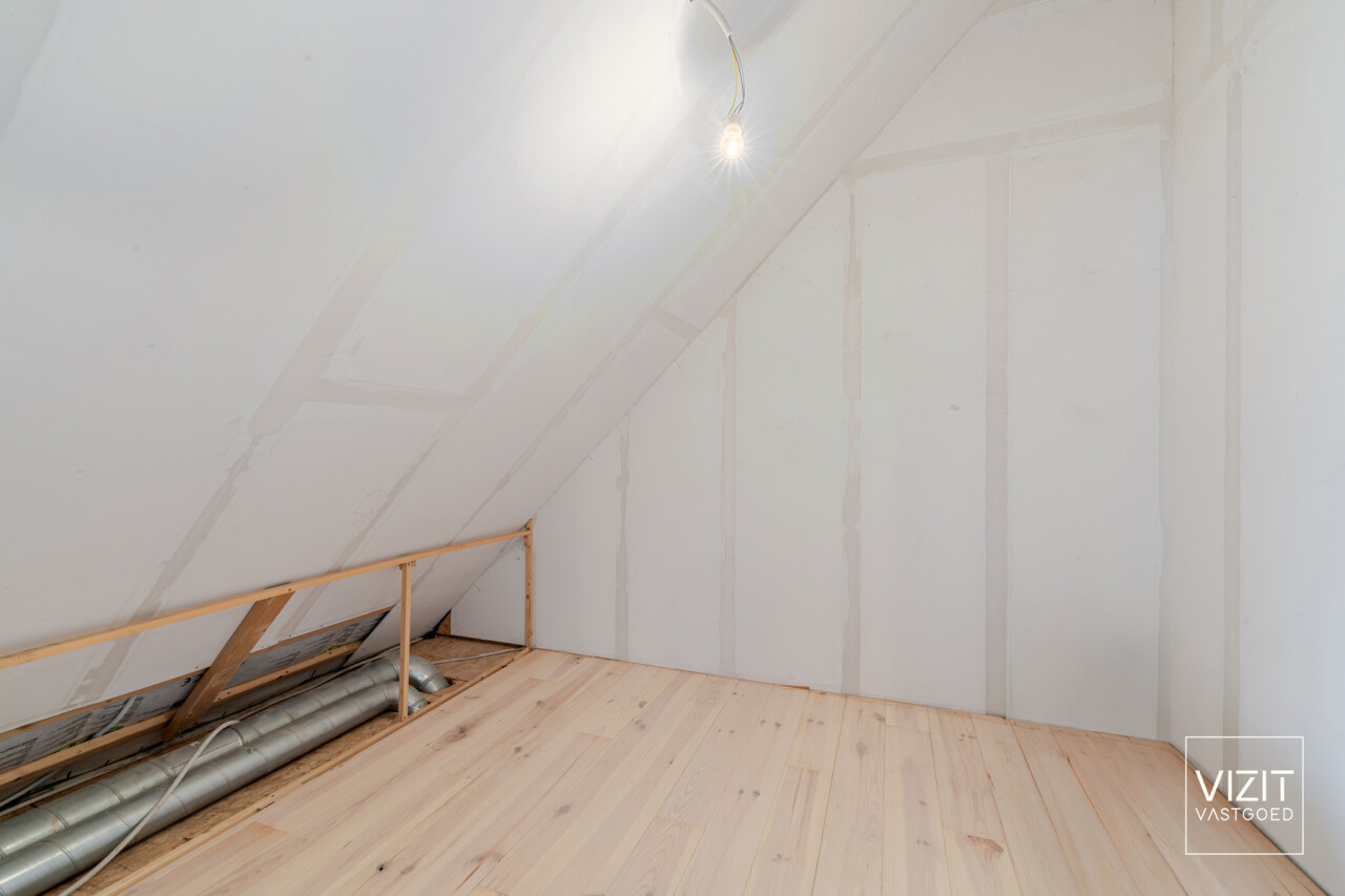 Op de eerste verdieping bevinden zich drie volwaardige slaapkamers, een ruime overloop en een badkamer uitgerust met ligbad, douche, lavabo en toilet. De tweede verdieping werd ingericht met twee bijkomende slaapkamers, een tweede badkamer met douche en lavabo, en een aanpalende ruimte die kan dienen als dressing of berging.