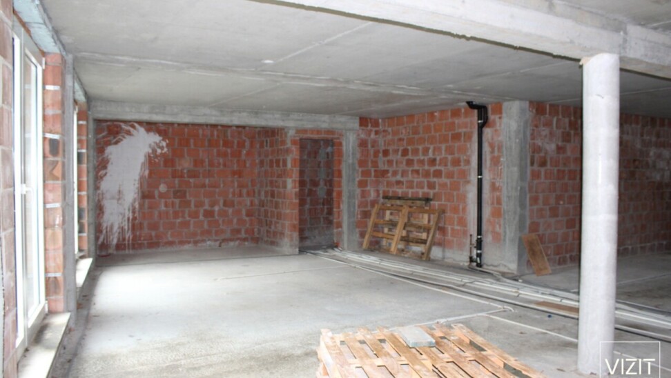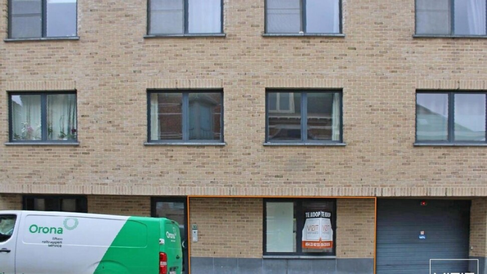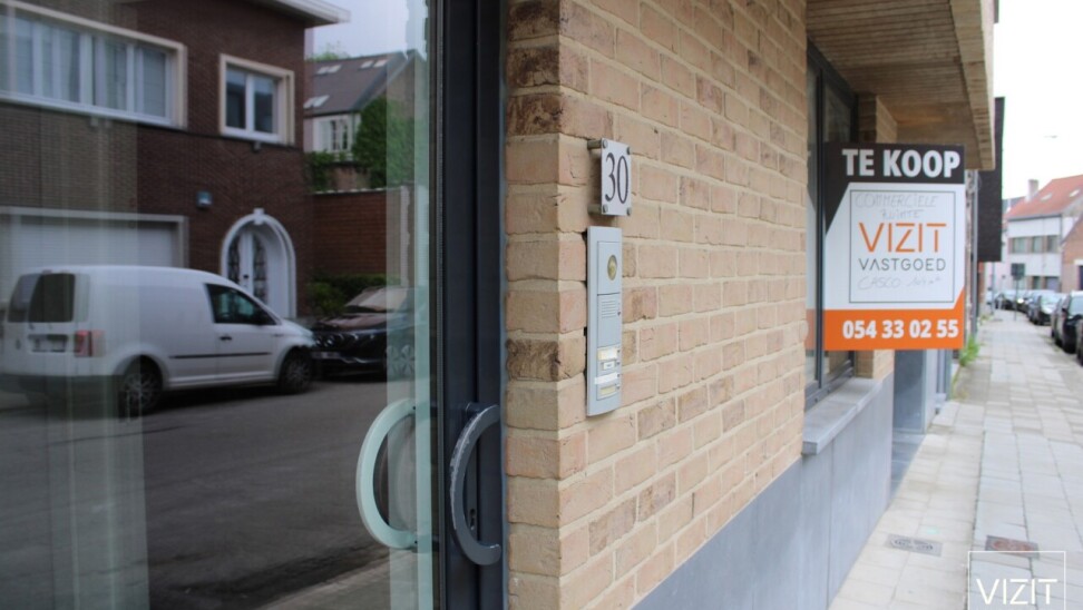 Casco handelspand van 104m² commerciële ruimte met groot terras op het gelijkvloers en parkingplaatsen ondergronds (optioneel). Uitermate geschikt voor vrije beroepen.