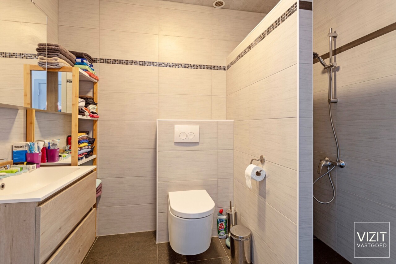Indeling: inkomhal, lichtrijke woonkamer, recente keuken, nachthal, moderne badkamer, berging, twee slaapkamers en een ruim terras van 27 m² met tuinhuisje voor extra opslag (vuilniszakken en kuismateriaal). Inclusief raamdecoratie. Gemeenschappelijke lasten: € 50 (forfait). Beschikbaar vanaf 01/03/2026.